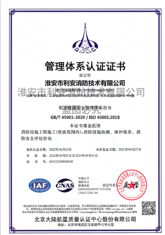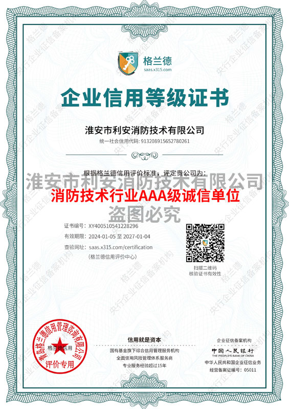 您好,欢迎访问淮安市利安消防技术有限公司官方网站!